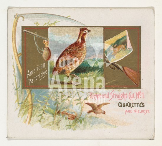 alb3662981 American Partridge, from the Game Birds series (N40) for Allen & Ginter Cigarettes. Dimensions: Sheet: 2 7/8 x 3 1/4 in. (7.3 x 8.3 cm). Publisher: Issued by Allen & Ginter (American, Richmond, Virginia). Date: 1888-90.Trade cards from the "Game Birds" series (N40), issued in 1888-90 in a set of 50 cards to promote Allen & Ginter brand cigarettes. Series N40 reproduces the cards from N13 in a larger size. Museum: Metropolitan Museum of Art, New York, USA.