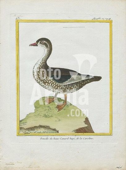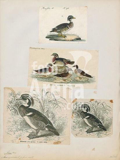 alb4353354 Aix sponsa, Print, The wood duck or Carolina duck (Aix sponsa) is a species of perching duck found in North America. It is one of the most colorful North American waterfowl., 1700-1880.