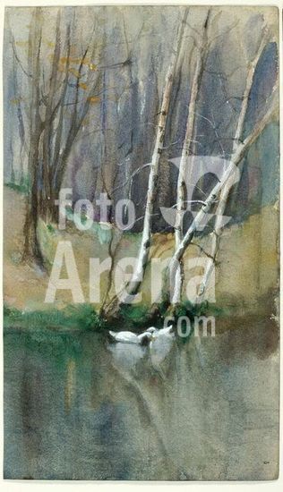 alb9535190 Untitled (Wood Scene with Birch Trees and Ducks). Date: n.d. Watercolor on paper. Museum: Smithsonian American Art Museum.