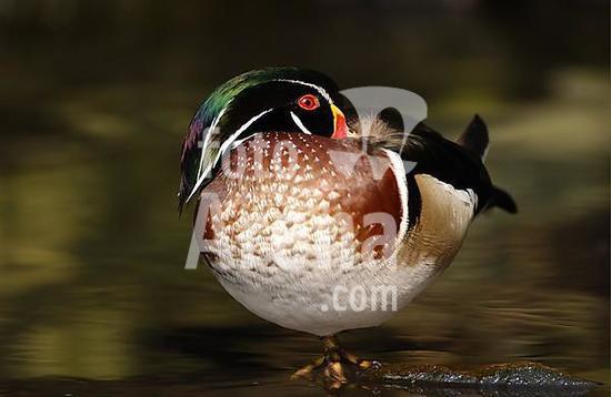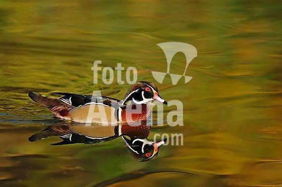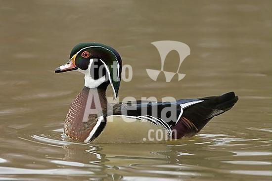 iblflp01440795 Wood Duck (Aix sponsa), adult male, swimming, captive
