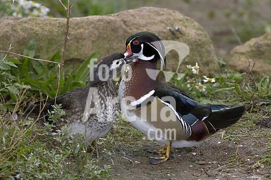 iblflp01440789 Wood Duck (Aix sponsa), adult pair, courtship behaviour, mutual preening