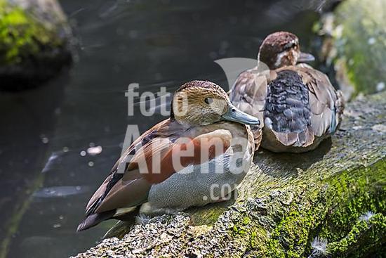 ibltsm09609025 Ringed teal (Callonetta leucophrys) male and female couple resting on shore, native to South American forests