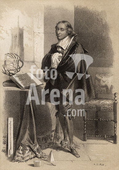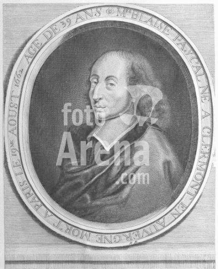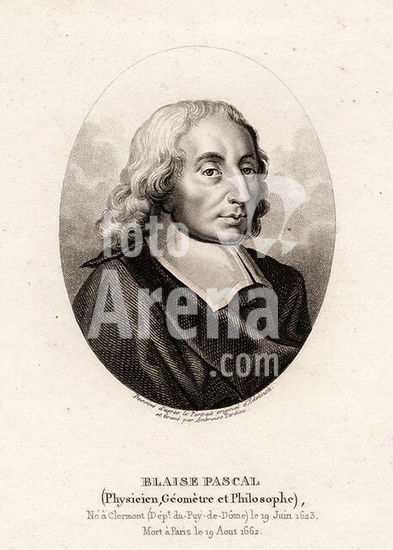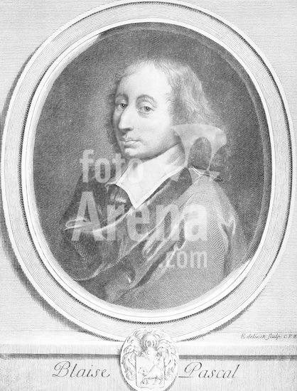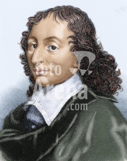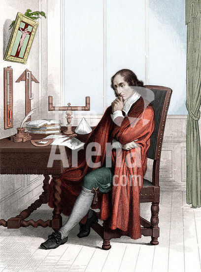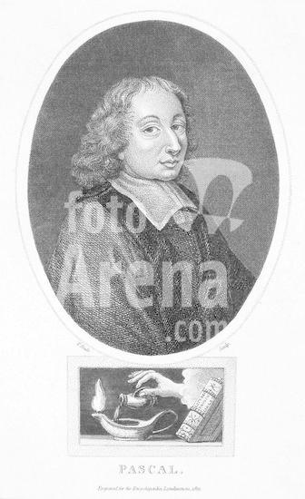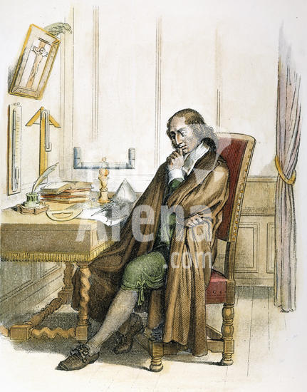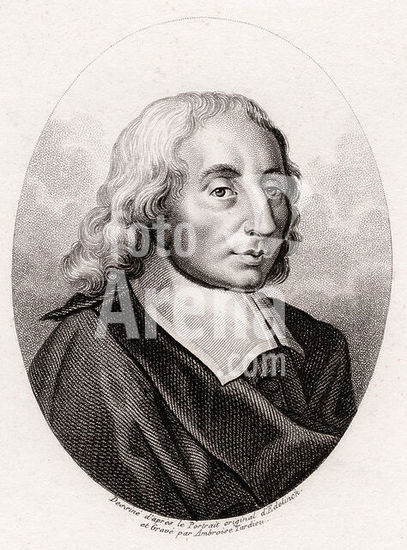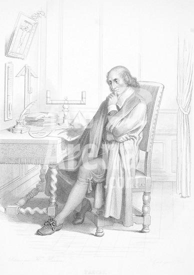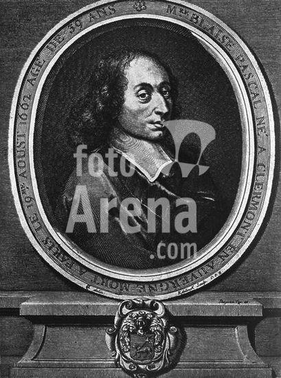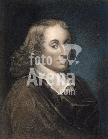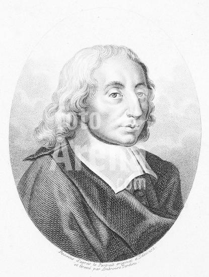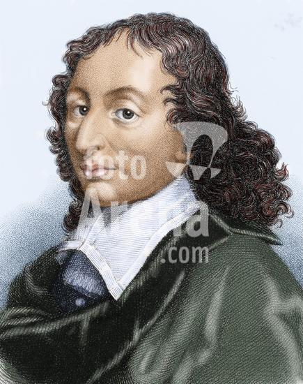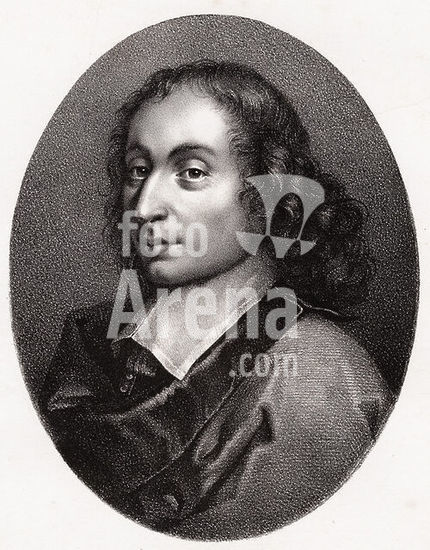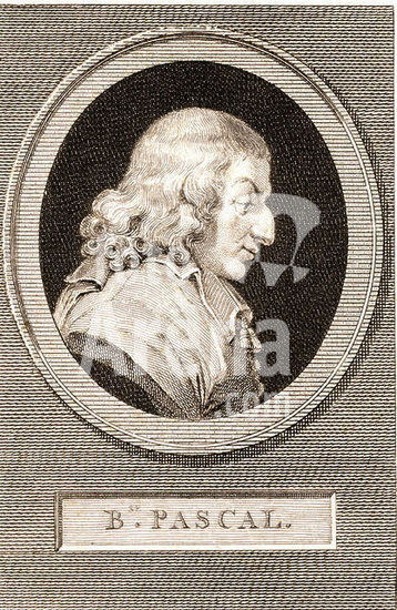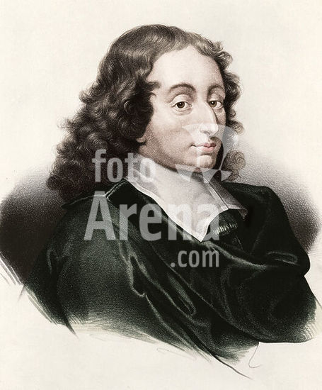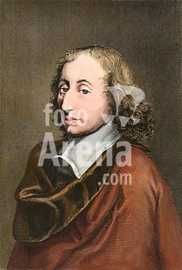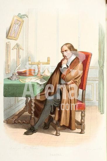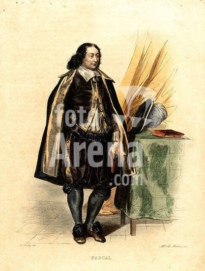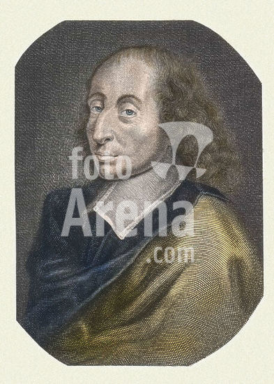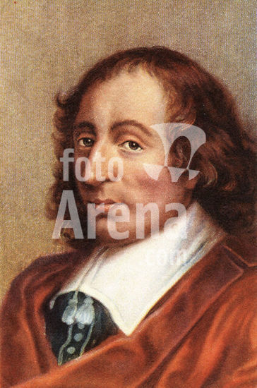 Pascal, Blaise; French philosopher, mathematician and physicist; Clermont-Ferrand. 19.6.1623 - Paris 19.8.1662. Portrait. Colour print (collector's card, Gutermann-Nähseidenfabrik); from an album: "Cent Portraits d'Hommes célèbres", Bruxelles. (éd. par Gutermann S.A.) date unknown (c. 1920). Paris, private collection.