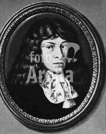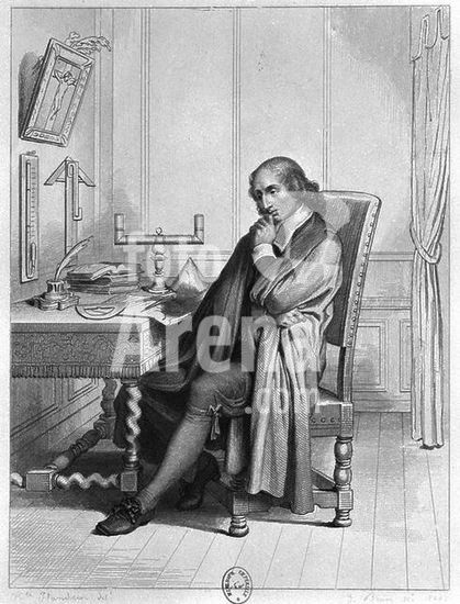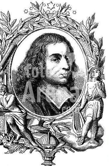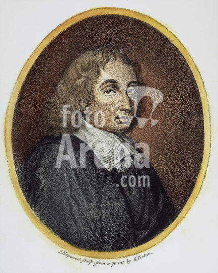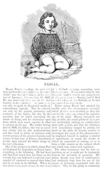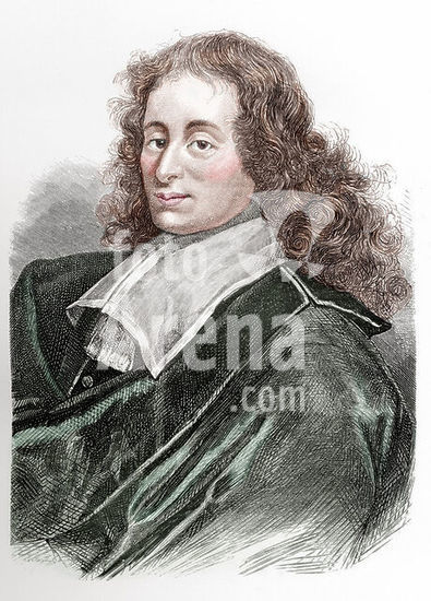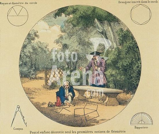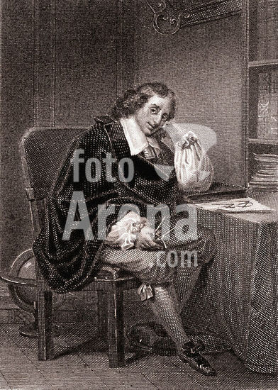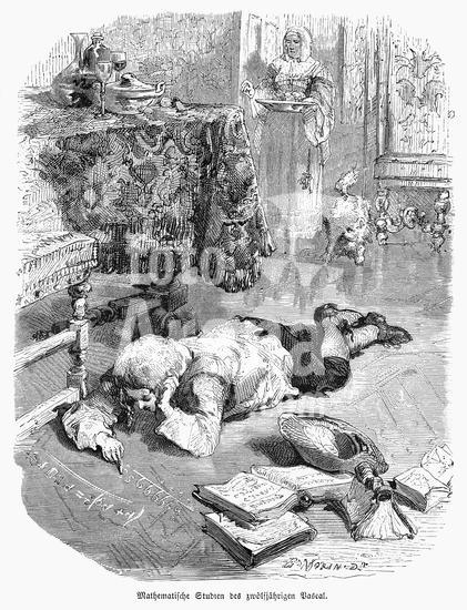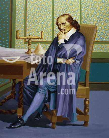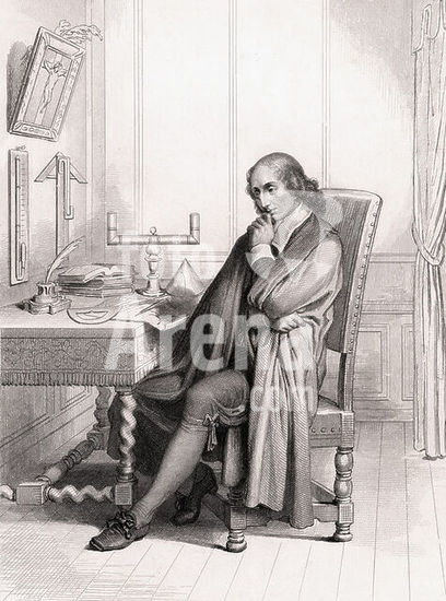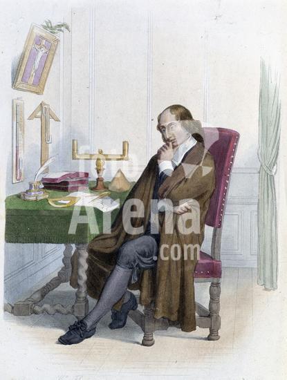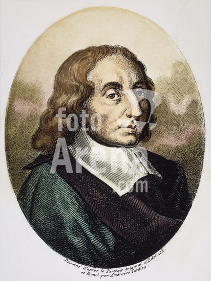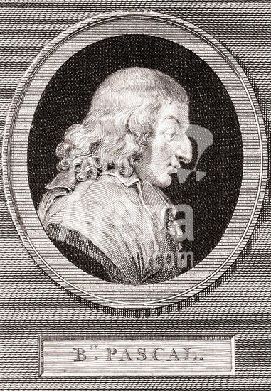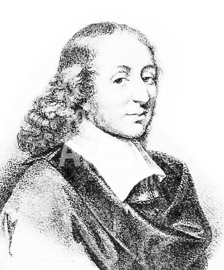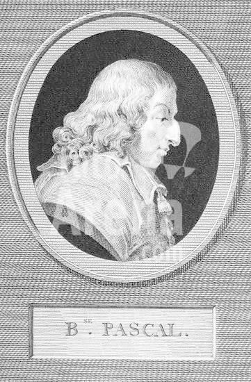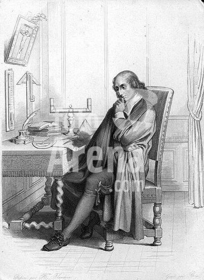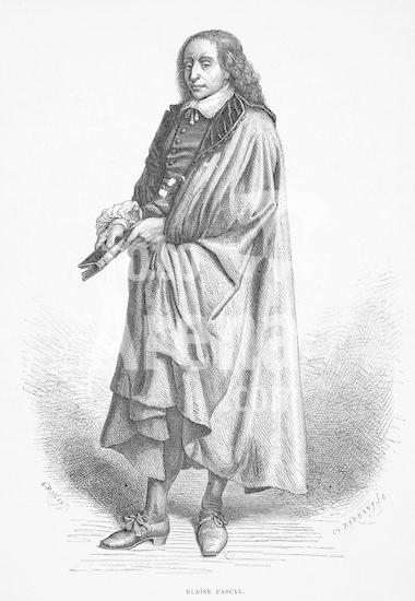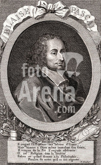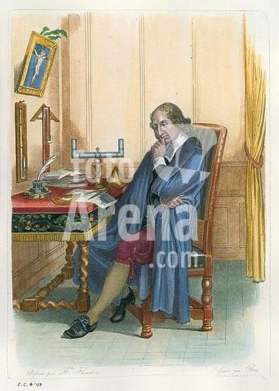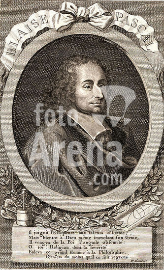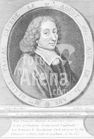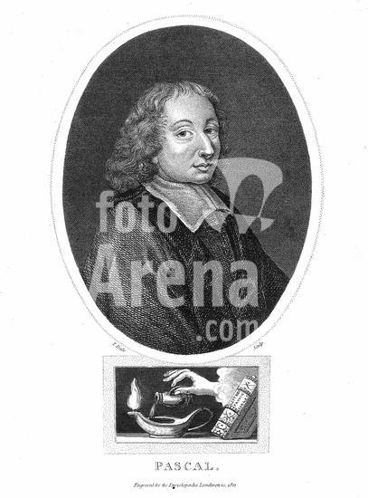 Pascal, Blaise; French philosopher, mathematician and physicist; Clermont-Ferrand. 19.6.1623 - Paris 19.8.1662. Portrait. Colour print (collector's card, Gutermann-Nähseidenfabrik); from an album: "Cent Portraits d'Hommes célèbres", Bruxelles. (éd. par Gutermann S.A.) date unknown (c. 1920). Paris, private collection.