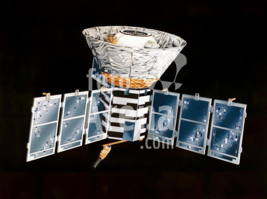 0185759 NASA: COBE SATELLITE. /nArtist's conception of NASA's Cosmic Background Explorer satellite (COBE), launched into orbit around the Earth in 1989 to conduct research into cosmic microwave background radiation, which would provide evidence in support of the Big Bang theory.