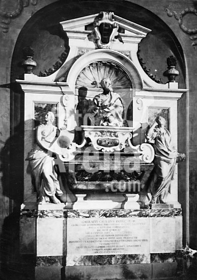 akg019377 Galilei, Galileo; Italian mathematician and philosopher 1564-1642. Galileo's tomb. (1737, designed by Giulio Foggini, bust and figure of Astronomy by Giovanni Battista and Vincenzo Foggini, figure of Geometry by Girolamo Ticciati). Florence, S.Croce, left side aisle.