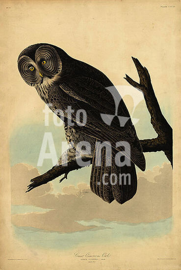 alb3716151 Great Cinereous Owl. Dated: 1837. Dimensions: plate: 96.8 x 64.8 cm (38 1/8 x 25 1/2 in.) sheet: 100.3 x 67.5 cm (39 1/2 x 26 9/16 in.). Medium: hand-colored etching and aquatint on Whatman paper. Museum: National Gallery of Art, Washington DC. Author: Robert Havell after John James Audubon.