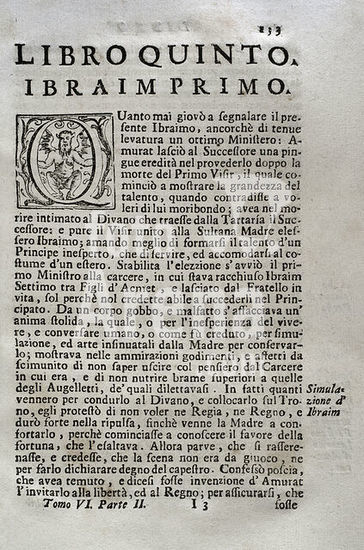 alb10997855 "Mappamondo Istorico". Volume VI. Part II. Life of the Ottoman Emperors. Book Five. Ibrahim (1615-1648). Sultan of the Ottoman Empire (1640-1648). By Father Antonio Foresti (1625-1692), of the Society of Jesus. Venice and Parma, 1722. Author: Antonio Foresti (1625-1692). Italian Jesuit and historian.