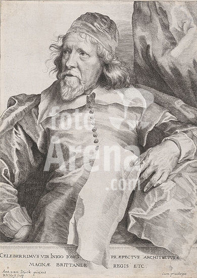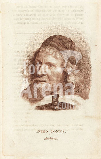 alb9876697 Inigo Jones, English architect, first to employ Vitruvian rules of proportion and symmetry, 1573-1652. Copperplate stipple engraving after a portrait by Sir Anthony van Dyck from Francis Fitzgeralds The Artists Repository and Drawing Magazine, Charles Taylor, London, 1785.