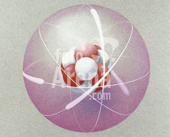 alb2340616 John Dalton (1766-1844). British physicist and chemist. Depiction of an atom. Drawing, watercolor by Francisco Fonollosa (late 20th century).