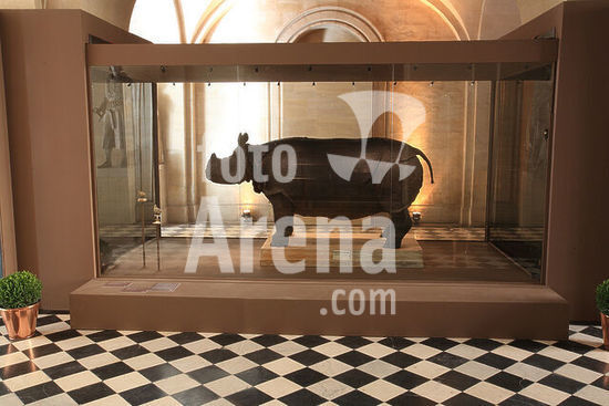 akg4908107 Ausstellung / Wissenschaftsausstellung. - Ausstellung "Sciences et curiosités à la cour de Versailles", Versailles (Département Yvelines, Frankreich), Schloss / Château de Versailles, Salles d'Afrique et de Crimée, 26. Oktober 2010 bis 27. Februar 2011. Innenansicht der Galerie de pierre basse mit Nashorn Ludwigs XV. (Indisches Panzernashorn, erworben 1769 für den König Ludwig XV., ab 11. September 1770 in Ménagerie in Versailles. 1794 präpariert durch Jean-Claude Mertrud und Félix Vicq d'Azyr. Paris, Muséum national d'histoire naturelle). - Foto, 25. Oktober 2010.
