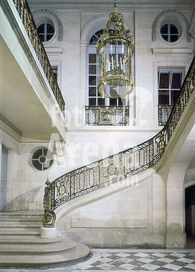 akg941106 Versailles (Dép. Yvelines, Ile de France, Frankreich), Petit Trianon (Lustschloss im Park von Versailles; erbaut unter Ludwig XV. 1764-68; Arch.: Jacques-Ange Gabriel). Innenansicht: Treppenhaus. Foto, undatiert.