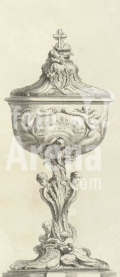alb15460818 Louis XV (king of France), Paris, Huquier, Gabriel, Meissonnier, Juste Aurèle, Oeuvre de Juste Aurele Meissonnier, Ciborium decorated with the Last Supper and putti, This print is part of an album., print, album leaf, ornament print, prints, height 390 mm, width 197 mm, French, 1695 - 1772-06-11, print maker, printmaker, 1738 - 1749, paper, etching, etchings, Work conception, 1693 - 1750-07-31, after a design by, Publication (Event), Publication, publisher, 1710-02-15 - 1774-05-10, granter of privilege.