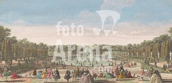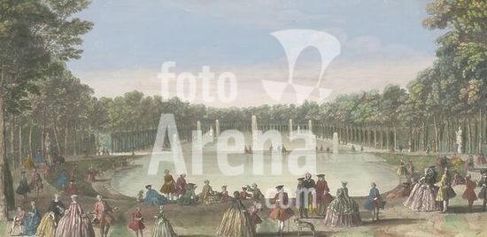 alb15500747 Louis XV (King of France), Paris, Rigaud, Jacques, View of the Bassin de Latone prise du bord de la terrasse du château, View of the Bassin de Latone in the Garden of Versailles, In the bottom margin two lines of French text., print, optic print, prints, optic prints, height 239 mm, width 476 mm, Publication (Event), Publication, publisher, 1700 - 1799, paper, cardboard, watercolor (paint), watercolour, etching, etchings, brush, French, 1681 - 1754, print maker, printmaker, 1710-02-15 - 1774-05-10, granter of privilege.
