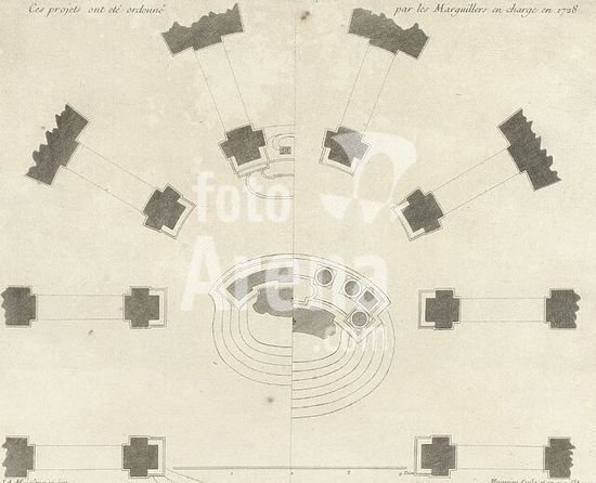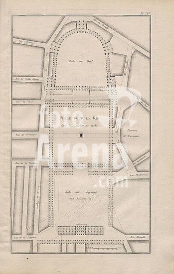 alb4398154 Place for the King in the Quartier des Halles, Illustration of the plan of the square for the king in the quarter of the Hall from the 18th century, pl. XLV, to p. 232, 1765, Pierre Patte: Monumens érigés en France à la gloire de Louis XV. Paris: chez l'auteur: chez Desaint: chez Saillant, 1765.