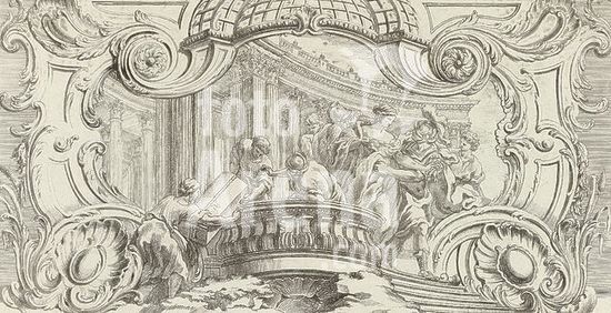 alb15533497 Louis XV (king of France), Huquier, Gabriel, Meissonnier, Juste Aurèle, Obelle, Oeuvre de Juste Aurele Meissonnier, Panneaux d'ornements rocaille, sept planches, Ornament with the abduction of Helena, This print is part of an album., print, album leaf, ornament print, prints, height 115 mm, width 209 mm, print maker, printmaker, 1738 - 1749, paper, papier, etching, etchings, Work conception, 1693 - 1750-07-31, after a design by, Publication (Event), Publication, French, 1695 - 1772-06-11, publisher, uitgever van privilege.