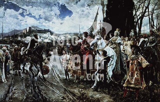 alb3284837 Rendición de Granada. Museum: PALACIO DEL SENADO, MADRID, SPAIN. Author: FRANCISCO PRADILLA Y ORTIZ. ISABELLA I OF CASTILE.