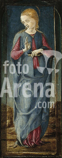 alb3730646 The Virgin Annunciate [middle right panel]. Dated: c. 1470/1480. Dimensions: overall (middle right panel): 31 x 12.4 cm (12 3/16 x 4 7/8 in.) framed: 43.5 x 16.8 x 4.4 cm (17 1/8 x 6 5/8 x 1 3/4 in.). Medium: tempera and distemper on panel. Museum: National Gallery of Art, Washington DC. Author: Cosme Tura.