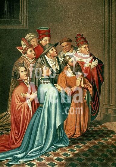 orz086077 FERNANDO I TRASTAMARA REY DE ARAGON Y SU ESPOSA LEONOR DE ALBURQUERQUE Y EL ANTIPAPA BENEDICTO XIII - GRABADO SIGLO XIX. Author: VALENTIN CARDERERA (1796-1880). Location: BIBLIOTECA NACIONAL-COLECCION. MADRID. SPAIN. BENEDIKT XIII. GEGENPAPST. FERNANDO I DE ARAGON Y SICILIA. FERNANDO I DE ANTEQUERA REY DE ARAGON. ARAGON FERNANDO I. ALBURQUERQUE LEONOR DE. LEONOR DE ALBURQUERQUE. LUNA ANTIPAPA. LUNA PAPA. PAPA LUNA. MARTINEZ DE LUNA PEDRO. FERNANDO I DE TRASTAMARA. FERNANDO DE ANTEQUERA.