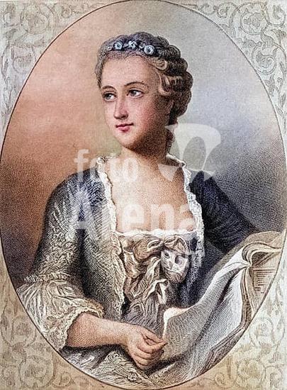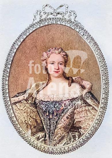 ibxsuc10219879 Jeanne-Antoinette Poisson, dame Le Normant d'etiolles, marquise (margravine) de Pompadour, duchesse (duchess) de Menars (born 29 December 1721 in Paris, died 15 April 1764 in Versailles), in short Madame de Pompadour, was a mistress of the French King Louis XV, Historical, digitally restored reproduction from a 19th century original, Record date not stated