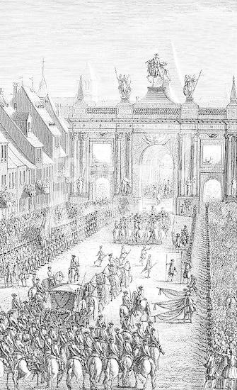 00636051 Louis XV, 15.2.1710 - 10.5.1774, King of France 1.9.1715 - 10.5.1774, entry to Strassbourg, 9.10.1744, copper engraving, 18th century,