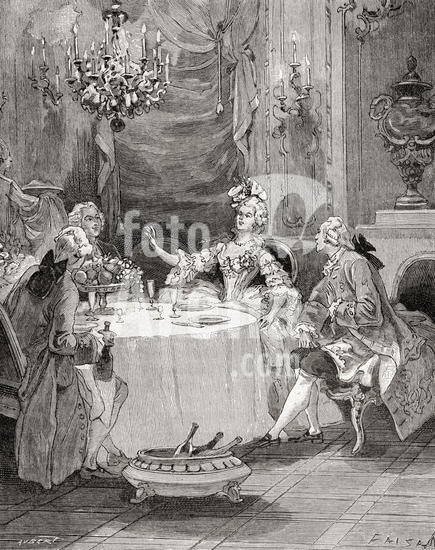 902_05_12280416HighRes Madame Pompadour entertaining guests in the 18th century. Jeanne Antoinette Poisson, Marquise de Pompadour, aka Madame de Pompadour, 1721 ?1764. Member of the French court and the official chief mistress of Louis XV. From Histoire de France, published c. 1880