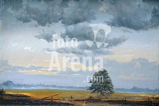 akg580541 Koeppel, Matthias. geb. 1937. "Aufziehendes Gewitter", 1982. Öl auf Pappe, 24 × 30 cm. Privatsammlung. Museum: PRIVATE COLLECTION. Copyright: © Matthias Koeppel. This artwork is not in the public domain. It is your responsibility to obtain all necessary third party permissions from the copyright handler in your country prior to publication.