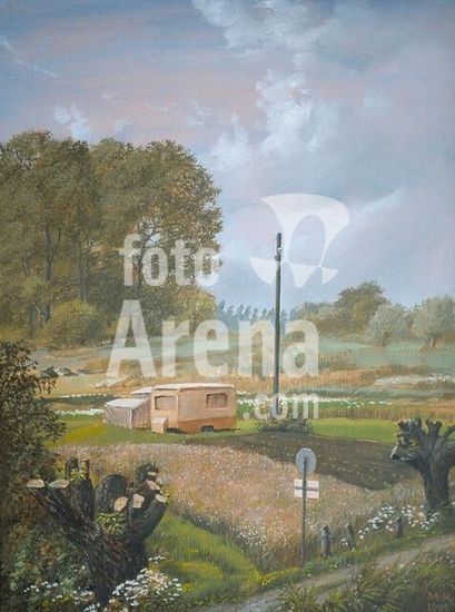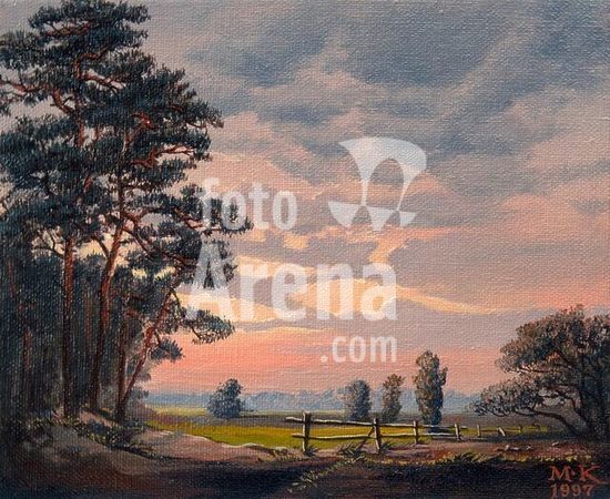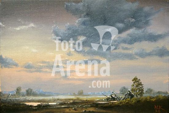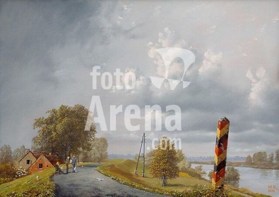 akg424327 Koeppel, Matthias. geb. 1937. "Auf dem Oderdamm bei Groß Neuendorf (Oderbruch) ", 1995. Öl auf Leinwand, 50 × 70 cm. (Mit altem DDR-Grenzpfahl). Privatsammlung. Museum: PRIVATE COLLECTION. Copyright: © Matthias Koeppel. This artwork is not in the public domain. It is your responsibility to obtain all necessary third party permissions from the copyright handler in your country prior to publication.