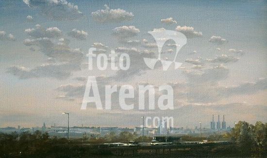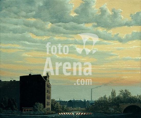 akg677286 Berlin, Steglitz.-"Abendwolken über Steglitz".-Gemälde, 1988, von Matthias Koeppel (geb.1937). Öl auf Leinwand, 18 x 30 cm. Museum: Private Collection., Privatsammlung.