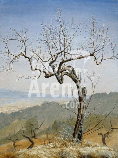 akg677289 Koeppel, Matthias; geb. 1937. "Erfrorener Olivenbaum im Tal des Arno (Toskana)", 1988. Öl auf Leinwand, 40 x 30 cm. Museum: Private Collection., Privatsammlung.