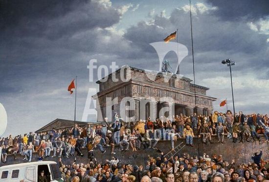 akg425357 Koeppel, Matthias, 1937, German painter and poet. "Die Öffnung der Berliner Mauer" (The Fall of the Berlin Wall), 1996/97. (Central image of a triptych). Oil on canvas, (central image), 400 × 440 cm. Berlin, Berlin House of Representatives. Copyright: © Matthias Koeppel. This artwork is not in the public domain. Additional copyright clearance may be required before use of this image.