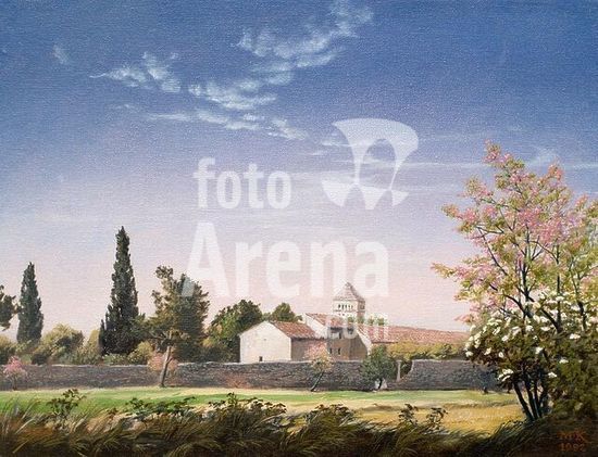 akg461367 Koeppel, Matthias ; né en 1937. - "La chapelle d'Eygalières (Bouches-du-Rhône), 1991. Huile sur toile, H. 0,30 ; L. 0,40. Collection particulière. Museum: PRIVATE COLLECTION. Copyright: This artwork is not in the public domain. It is your responsibility to obtain all necessary third party permissions from the copyright handler in your country prior to publication. © Matthias Koeppel.