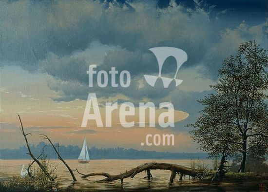akg424375 Koeppel, Matthias ; né en 1937. "Rivages de la Havel avec voiliers", 1996. Huile sur toile, H. 0,30 ; L. 0,40. Collection particulière. Museum: PRIVATE COLLECTION. Copyright: This artwork is not in the public domain. It is your responsibility to obtain all necessary third party permissions from the copyright handler in your country prior to publication. © Matthias Koeppel.