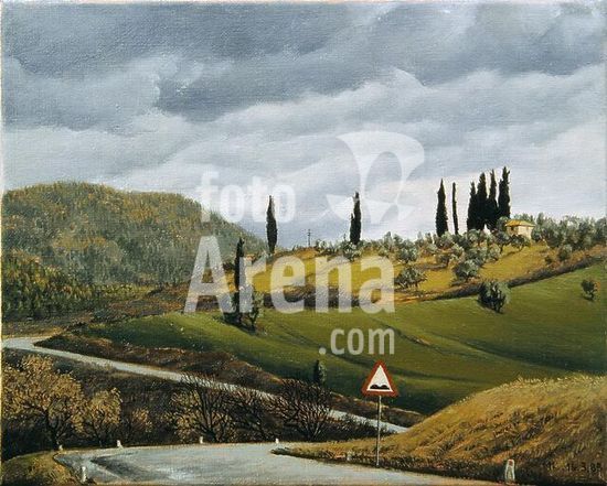 akg677399 Koeppel, Matthias; geb.1937. "Straße nach Florenz", 1985. Öl auf Leinwand, 45 x 60 cm. Museum: Private Collection., Privatsammlung.