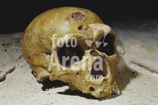 00482979 Neanderthal (Homo neanderthalensis) fossil skull model owned by Rhinopolis, France