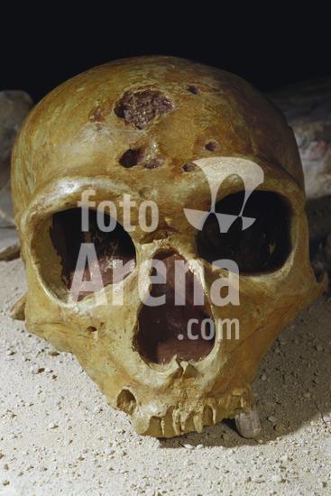 00482976 Neanderthal (Homo neanderthalensis) fossil skull model owned by Rhinopolis, France
