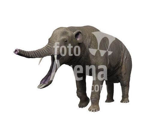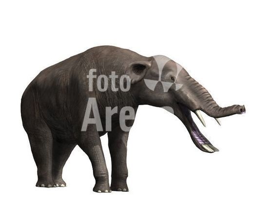 alb3876587 Platybelodon mammal on white background. Platybelodon was a herbivorous extinct mammal related to the elephant that lived in Miocene Era in Africa, Europe, Asia and North America.