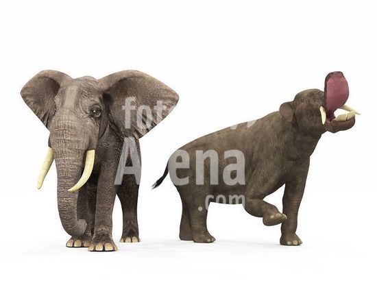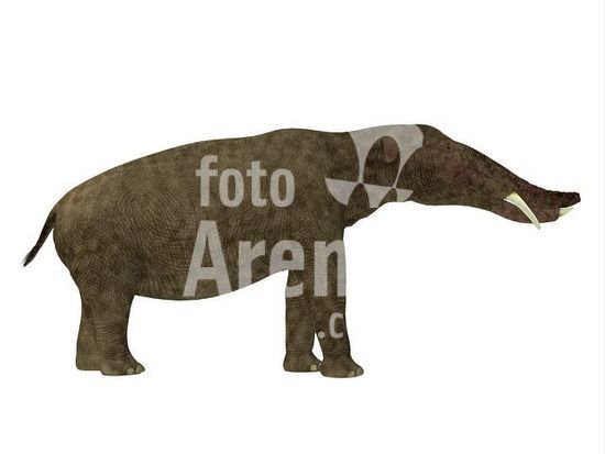 alb3884071 Platybelodon mammal, side view. Platybelodon was a herbivorous extinct mammal related to the elephant that lived in Miocene Era in Africa, Europe, Asia and North America.