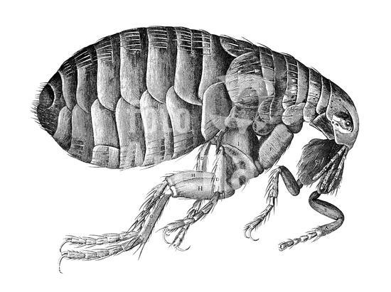 0016524 HOOKE: FLEA, 1665. A flea, as seen by Robert Hooke with his microscope. Copper engraving from Hooke's 'Micrographia,' 1665.