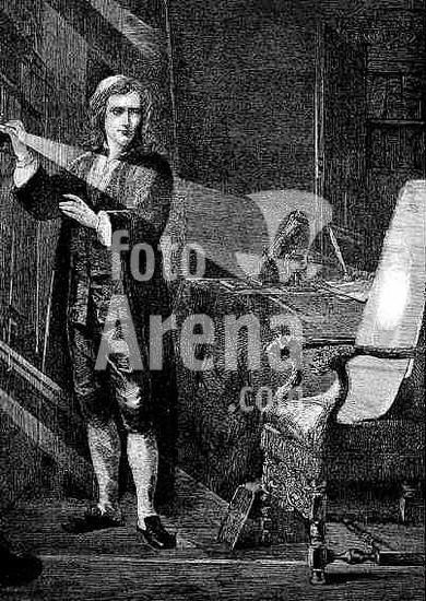 alb1468295 Isaac Newton (1643-1727). English physicist, mathematician, astronomer, natural philosopher, alchemist, and theologian. Newton's work on the nature of light.