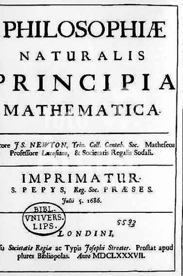 0010474 ISAAC NEWTON TITLE-PAGE. Title page of Sir Isaac Newton's 'Philosophiae Naturalis Principia Mathematica,' London, 1687.