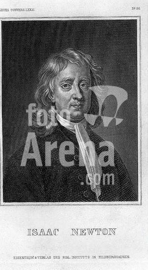 00557714 Newton, Isaac Sir, 5.1.1643 - 31.3.1727, British physicist, portrait, steel engraving, Meyers encyclopaedia, Hildburghausen, Germany, 19. Jh., mathematician, philosopher, early modern times, encyclopedia, lexicon,