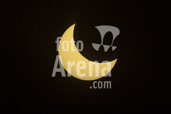 March 29, 2025, Barcelona (Catalonia, Spain: Partial solar eclipse seen from the Basilica of the Sagrada Familia, on March 29, 2025, in Barcelona, Catalonia (Spain). During the morning of this Saturday it has been possible to observe from Spain a partial solar eclipse. This phenomenon, which is produced by the interposition of the moon between the sun and the earth, has reached a maximum magnitude higher than 0.4 in the extreme northwest of the Peninsula, higher than 0.3 in the Canary Islands and the west of the peninsula and higher than 0.2 in the east of the Peninsula and the Balearic Islands...29 MARCH 2025..Lorena Sopêna / Europa Press..03/29/2025 (Credit Image: © Lorena SopêNa/Contacto/Zuma Press/Fotoarena)