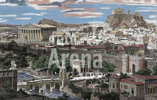 ATHENS, Aug. 27, 2024 Tourists pose for a photo in front of statues of philosophers Socrates and Confucius at the ancient Agora of Athens in Athens, Greece, on Aug. 27, 2024. Greek tourism revenue surged by 12.2 percent in the first half of 2024 year-on-year to reach 6.921 billion euros (7.75 billion U.S. dollars), according to recent data from the Bank of Greece. (Credit Image: © Marios Lolos/Xinhua/Zuma Press/Fotoarena)