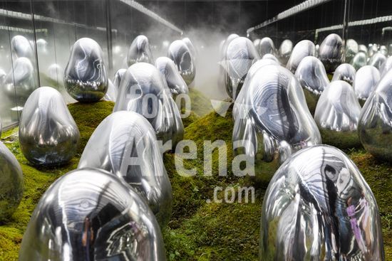 ny051224195812 **EMBARGO: No electronic distribution, Web posting or street sales before SATURDAY 5:01 A.M. ET DEC. 7, 2024. No exceptions for any reasons. EMBARGO set by source.** A moss garden of ovoid sculptures that reflect the changing light at teamLab Planets in Tokyo, Oct. 4, 2024. The art collective behind teamLab, which started in Japan, has expanded across the world, developing partnerships to pay for its immersive technology. (Shiho Fukada/The New York Times/Fotoarena)