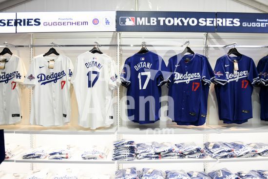 ny170325222936 **EMBARGO: No electronic distribution, Web posting or street sales before Tuesday at 12:01 a.m. ET on Mar. 17, 2025. No exceptions for any reasons. EMBARGO set by source.** Los Angeles Dodgers jerseys featuring baseball sensation Shohei Ohtani at a pop-up store for Major League Baseball (MLB) in Tokyo, March 14, 2025. The Los Angeles Dodgers star, a marketer?s dream who is both a sports icon and national hero in Japan, has about 20 active sponsorship deals at any time. (Noriko Hayashi/The New York Times/Fotoarena)
