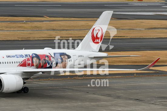 ny170325223026 **EMBARGO: No electronic distribution, Web posting or street sales before Tuesday at 12:01 a.m. ET on Mar. 17, 2025. No exceptions for any reasons. EMBARGO set by source.** Images of baseball sensation Shohei Ohtani on the side of a Japan Airlines plane, at Haneda Airport in Tokyo, March 6, 2025. The Los Angeles Dodgers star, a marketer?s dream who is both a sports icon and national hero in Japan, has about 20 active sponsorship deals at any time. (Noriko Hayashi/The New York Times/Fotoarena)