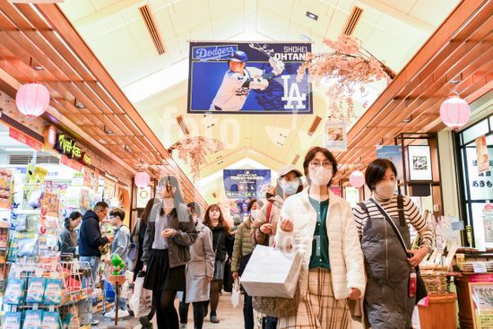 ny170325223013 **EMBARGO: No electronic distribution, Web posting or street sales before Tuesday at 12:01 a.m. ET on Mar. 17, 2025. No exceptions for any reasons. EMBARGO set by source.** A poster of baseball sensation Shohei Ohtani hangs above shops in Tokyo, March 15, 2025. The Los Angeles Dodgers star, a marketer?s dream who is both a sports icon and national hero in Japan, has about 20 active sponsorship deals at any time. (Noriko Hayashi/The New York Times/Fotoarena)