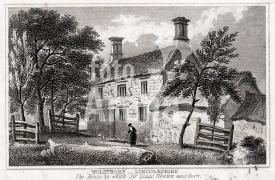 917_05_0460001522 Woolsthorpe Manor, near Grantham, Lincolnshire, England, birthplace of Isaac Newton (1642-1727). Early 19th century copperplate engraving.
