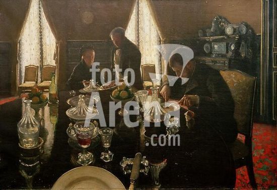 akg861120 Caillebotte, Gustave 1848-1894. "Le déjeuner" (the breakfast), 1876. (The artist's mother and the brother René during breakfast in the apartment of family Caillebotte, Paris, rue Miromesnil). Oil on canvas, 52 x 75 cm. France, private collection.